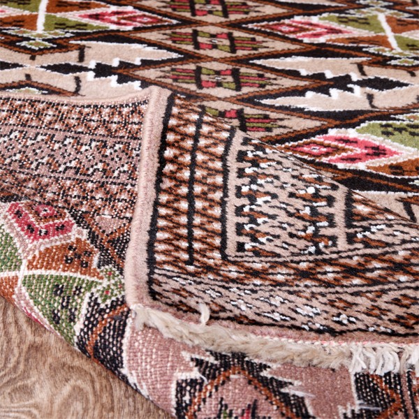 Best raw materials and specific warm colours, made these carpets popular. Turkaman hand-made carpets are made of wool, silk, wool and silk and fluff (Kork). In these carpets you can see beautiful design and motifs such as geometric design and the base colour is usually red. One of the most famous Turkaman hand-made carpets is Bokhara hand-made carpet.